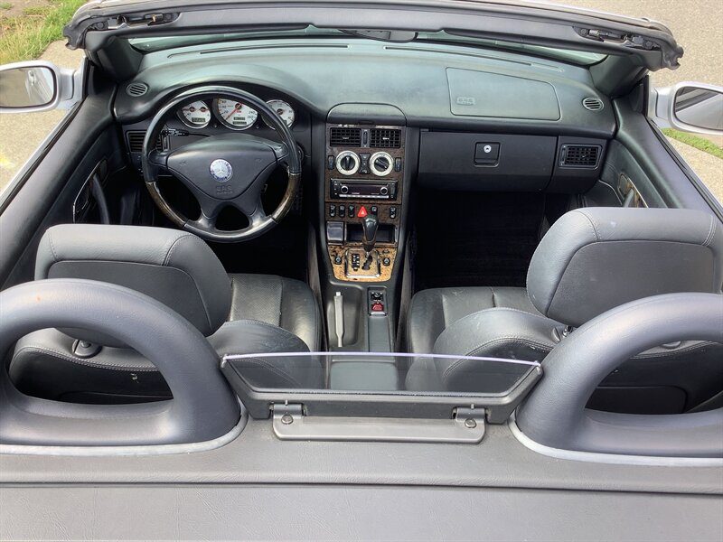 The 2001 Mercedes Benz SLK320 convertible, is powered by a 3.2L V6 producing 215 hp and 229 lb-ft torque at 3,000 rpm. 5 speed automatic transmission, 16" alloys on M+S all season tires. Powered retracting hardtop roofs converts this coupe into a roadster in 25 secs.